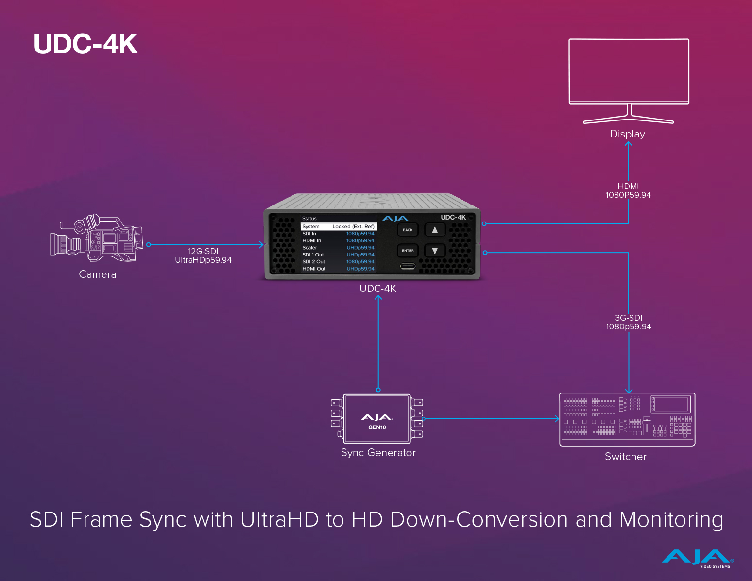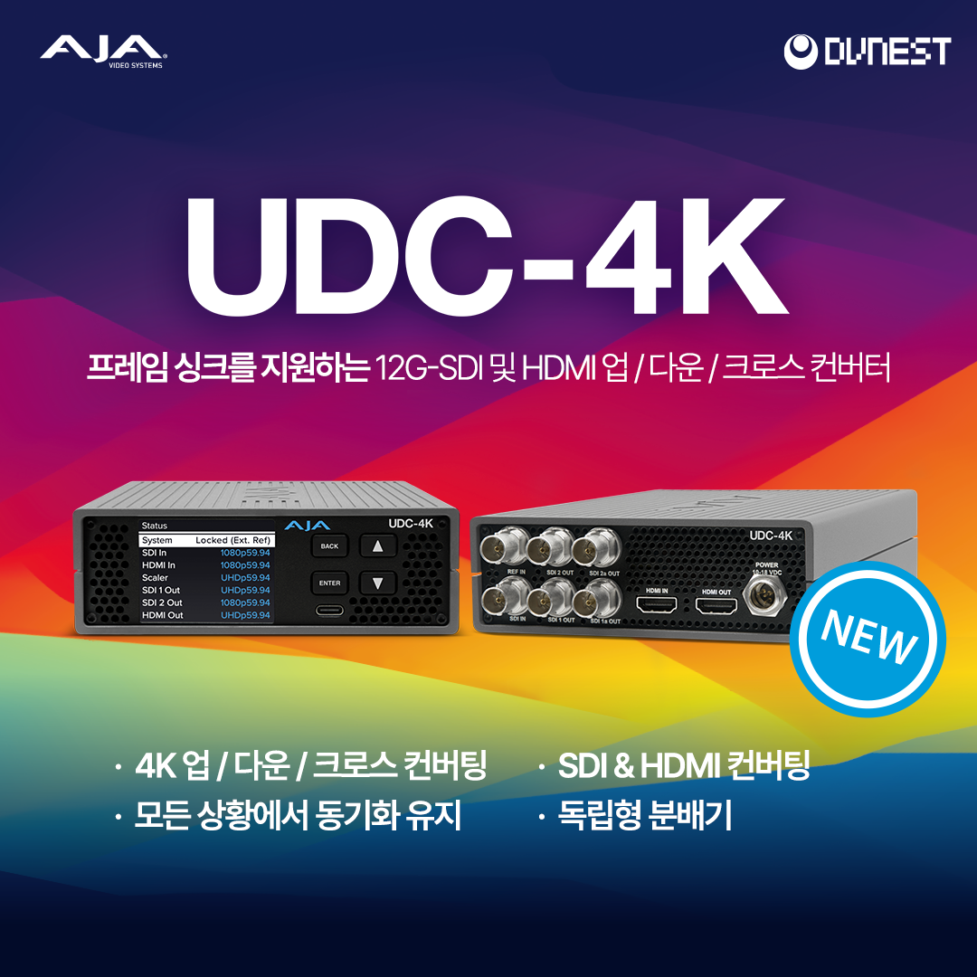 AJA의 UDC-4K는 최상위 12비트 영상 처리 기술을 탑재하여 업·다운·크로스 변환 시 발생할 수 있는 화질 손실을 최소화했습니다.