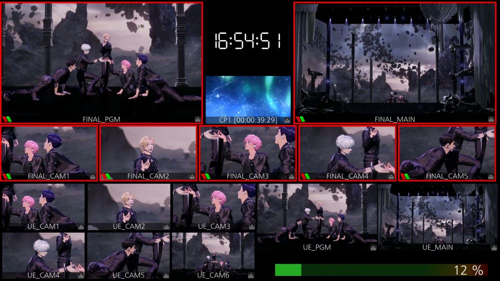 Kairos는 콘서트 현장의 중앙 허브 역할을 했습니다. Kairos에서 배경 영상, 자막, 효과 레이어가 동시에 전환되므로 복잡한 그래픽 합성도 실수 없이 안정적으로 진행할 수 있습니다. 멀티뷰어에서는 메인 출력과 예비 소스, 오디오 레벨까지 모두 실시간으로 모니터링했습니다. 또한 서로 다른 다양한 비디오 포맷이 동시에 요구되었는데, Kairos는 포맷 변환을 내장 처리하여 별도의 컨버터 없이도 안정적인 분배가 가능했습니다.