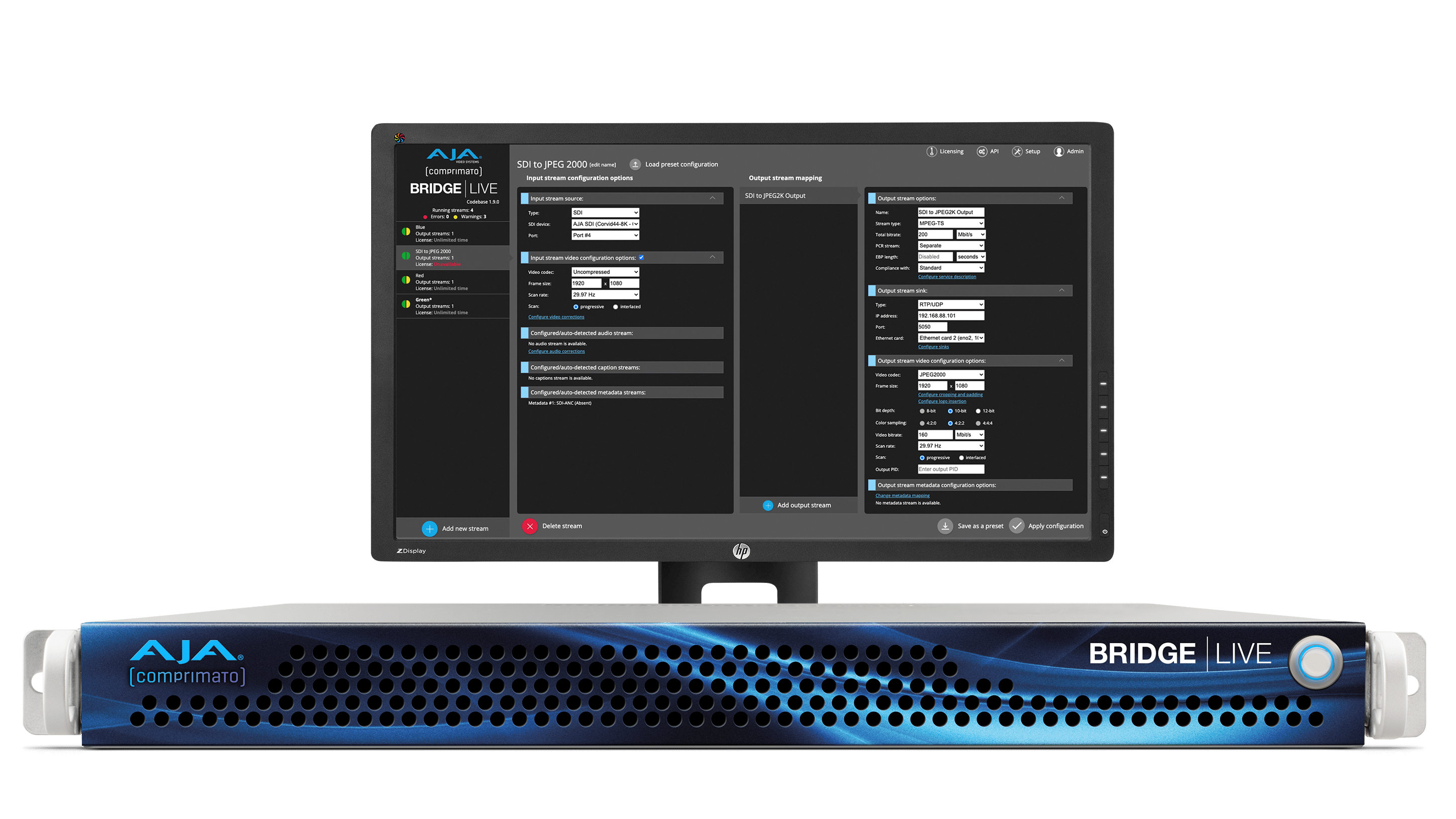 스트리밍 소프트웨어 전문가 Comprimato와 협력하여 개발된 BRIDGE LIVE는 고성능 12G-SDI 비디오 인코딩/디코딩, 스트림 기반 트랜스코딩, 유연한 12G-SDI I/O, 포괄적 메타데이터 및 클로즈드 캡션 지원, 소형 1RU 형태로 구축된 턴키 솔루션이며 SRT, RTMP, RTSP, HLS 등의 전송 프로토콜을 지원합니다. |