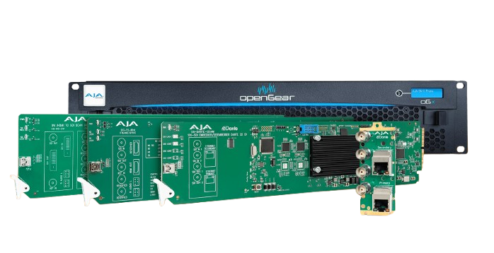 AJA openGear 컨버터는 AJA OG-X-FR을 포함한 오픈기어 프레임에서 사용할 수 있으며 최고 수준의 품질과 안정성을 제공합니다. IP를 통한 비디오 및 오디오, 인프라, HDMI/SDI 변환, 스캔 변환, 파이버 변환 및 스케일링 용 카드를 제공합니다. 모든 AJA openGear 컨버터는 DashBoard 소프트웨어와 호환되므로 편리하게 구성하고 제어할 수 있습니다. |